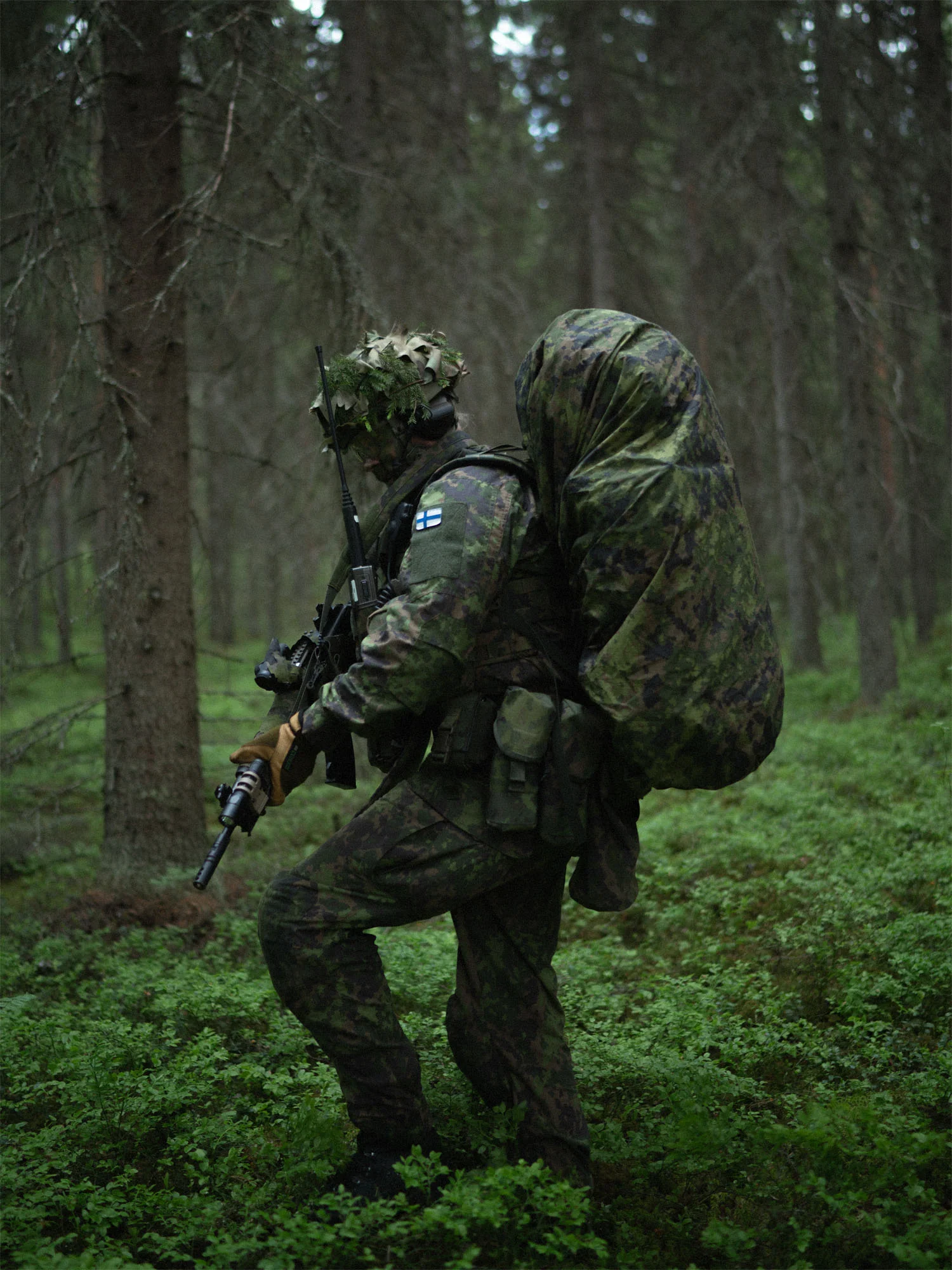 Lightweight, waterproof backpack cover for large packs. IRR model, made from near-infrared adapted materials. Seamless construction, adjustable elastic retention cord and tie-down toggle loops for securing to your pack.